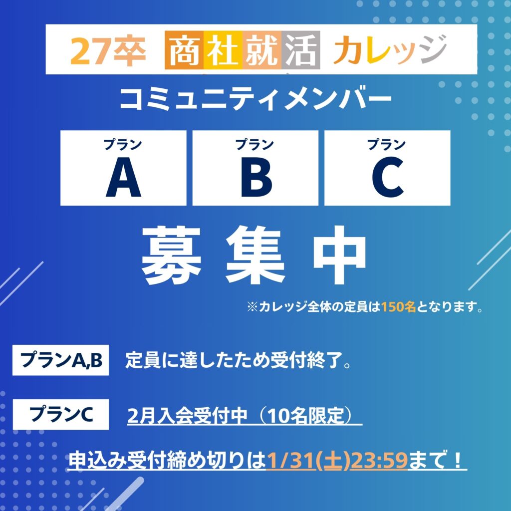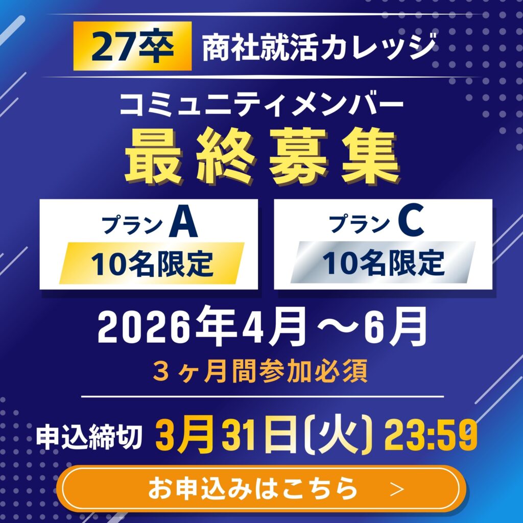 ● 27卒の就活生・商社への就職に興味がある人